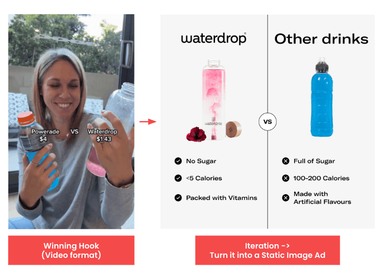 Creative isn’t just important, it’s everything. For waterdrop, creative accounted for over 70% of paid social performance. So instead of treating it as a design task, we treated it like a growth engine. At Webprofits, we apply a data-driven, iterative creative framework that scales