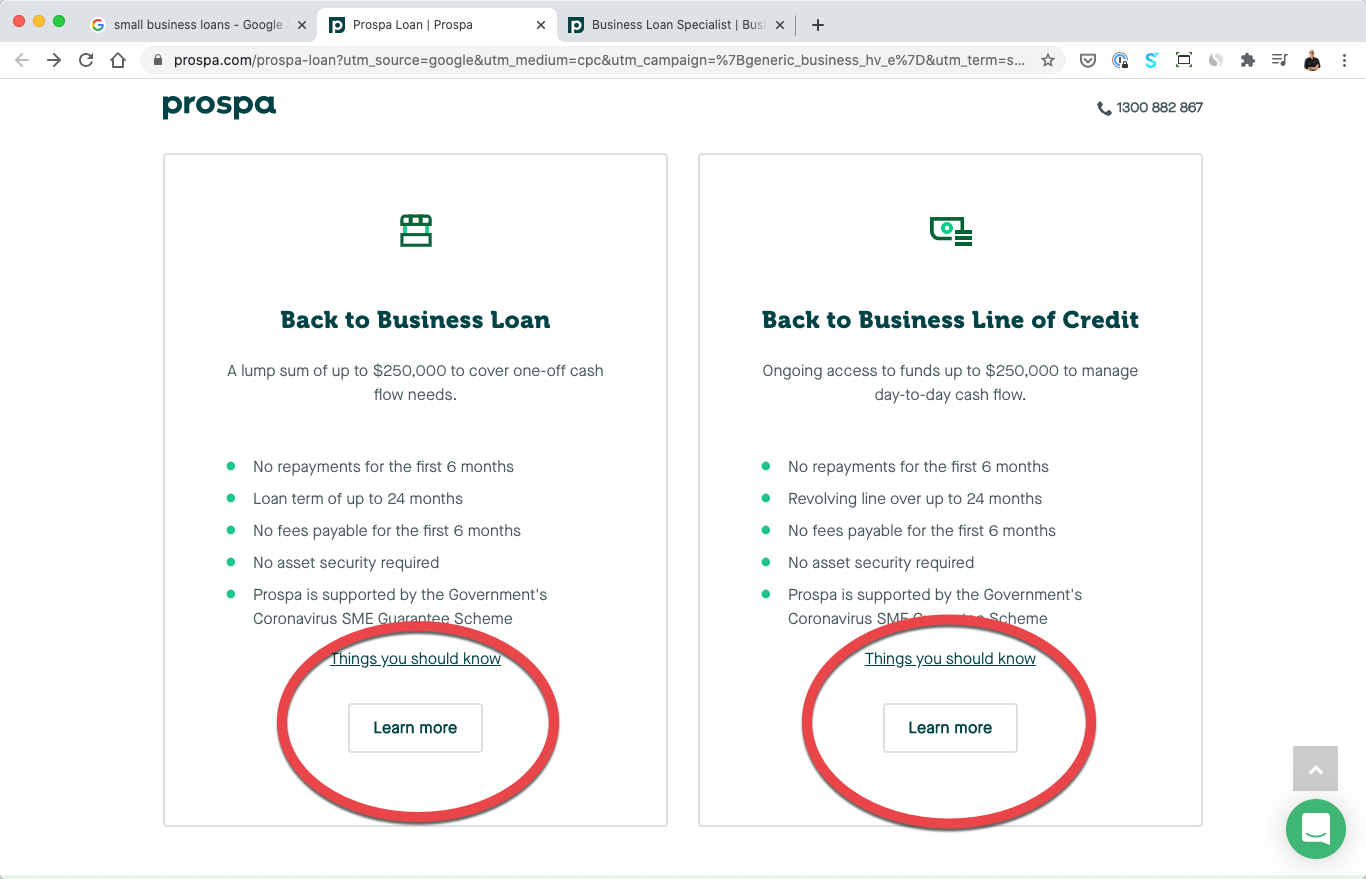 - “Prospa Small Business Loans” – the keyword they are bidding on + the brand name