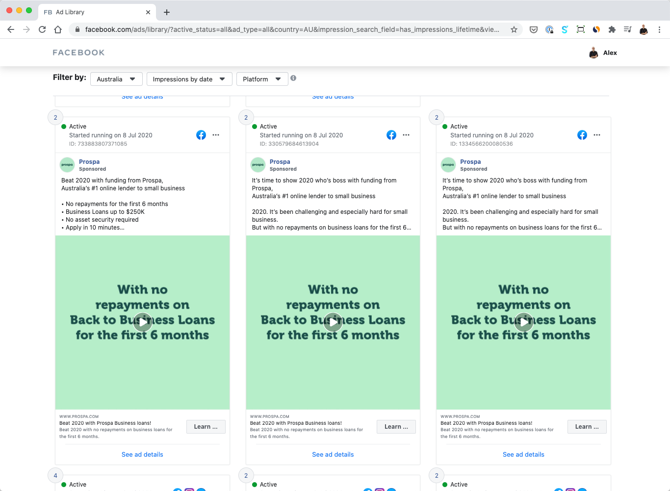 Prospa only advertises content on Facebook, Messenger and the Audience Network